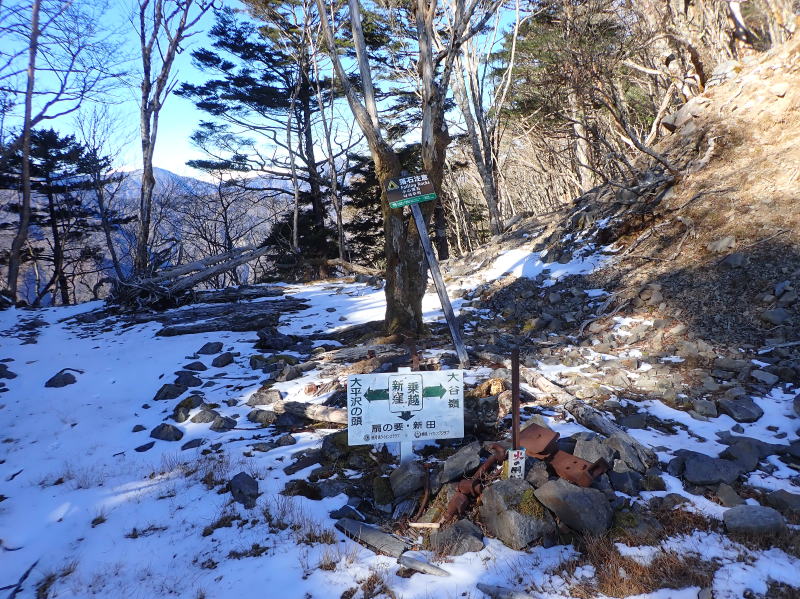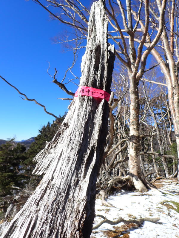 山頂から約30分で「新窪乗越」へ。この日は誰にも会わず、雪上のトレースも一切なし。