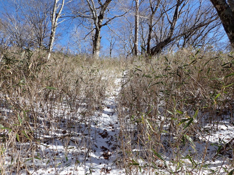 ここもかつては腰高ほどの笹が密生し、笹を束ねながら喘ぎ登った場所でした(2013年11月撮影)。