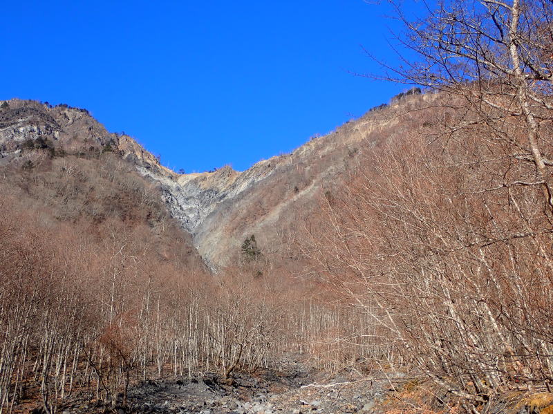 ガレの谷底の向こう側は「扇の要」と呼ばれているところと直結しています。