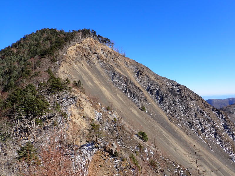 振り返って、ハチビツ山の山容。七段沢のコルから見た姿とは、まったく印象が異なります。