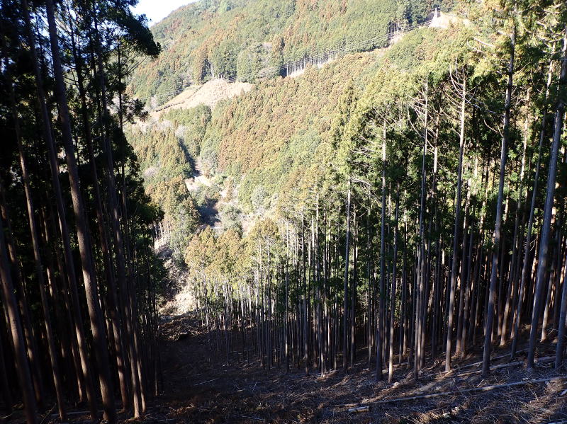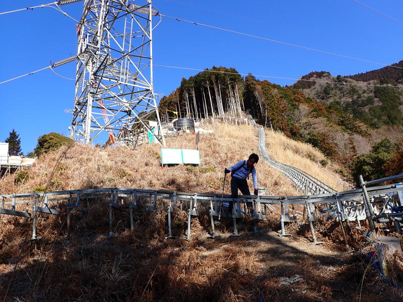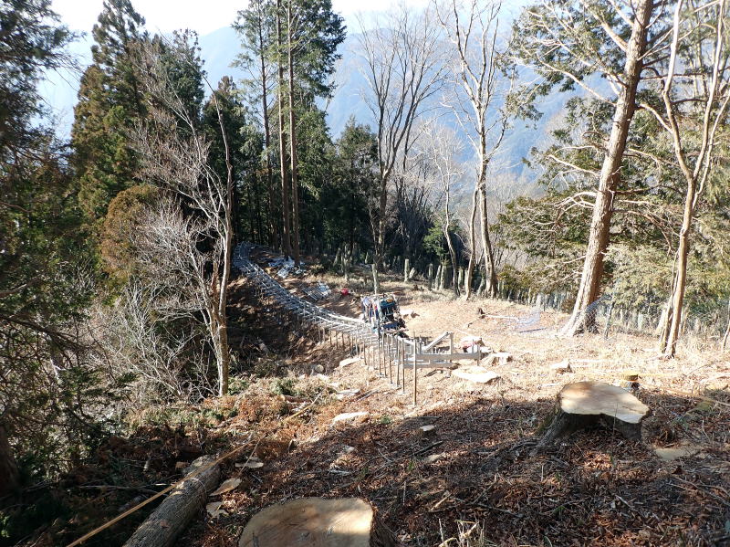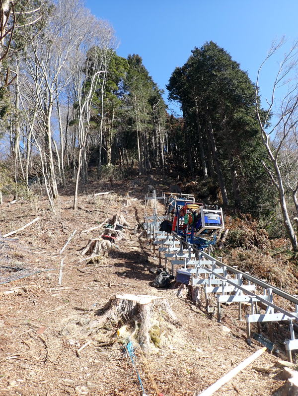 しばらく植林帯を下っていくと、半年前には無かったモノラックが現れ・・・