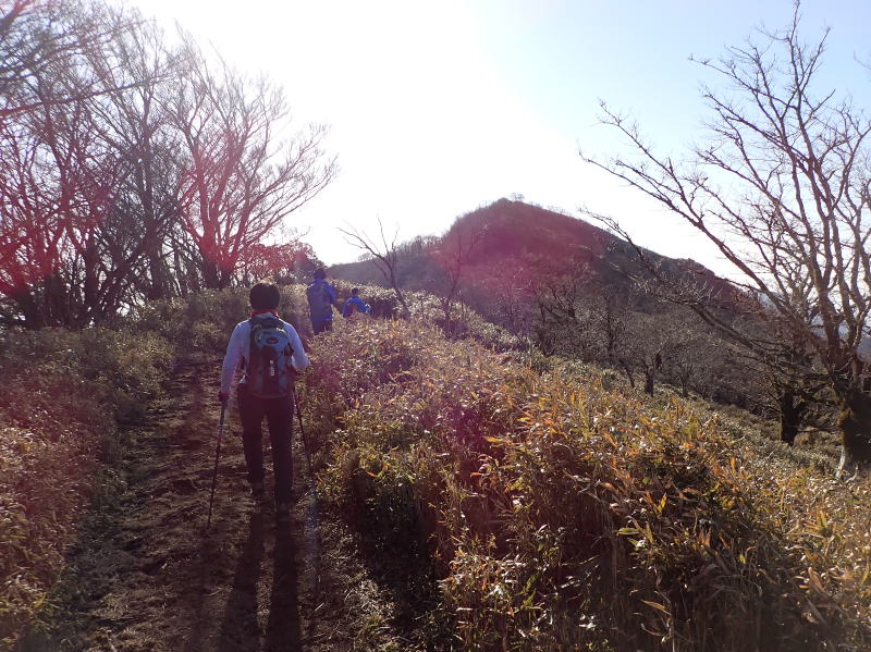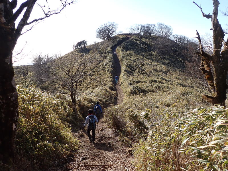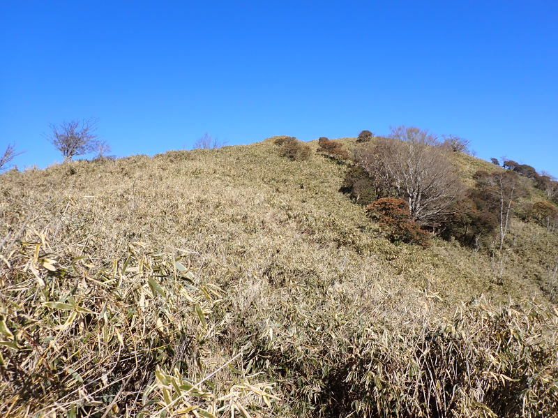分岐から更に進めば、見晴らしの良い笹原へ。