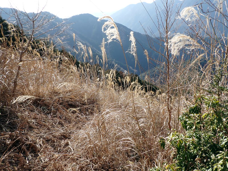 植林帯をいったん抜けると、ススキとシダに覆われている不明瞭箇所へ。