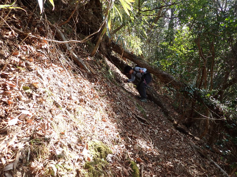 倒木箇所はノコギリでは手に負えず、今回もスルー。谷側は急斜面なので、滑落しないよう十分注意が必要なところです。